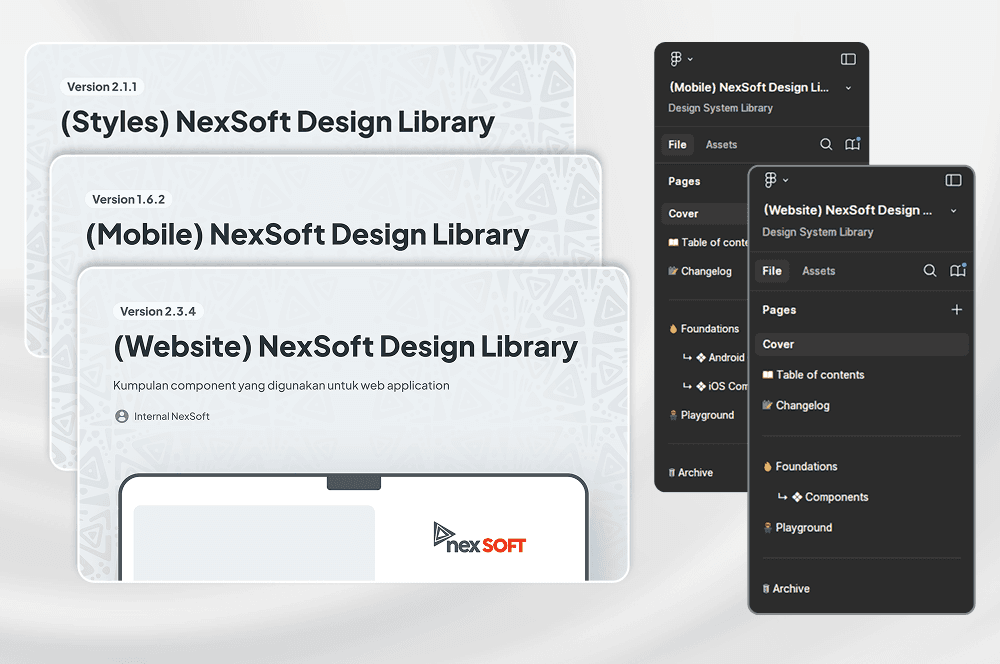 Saya mengembangkan NexSoft UI Libraries, sebuah design system yang berisi kumpulan komponen antarmuka untuk menciptakan standarisasi dan konsistensi pada aplikasi web maupun mobile. Sistem ini membantu tim desain dan pengembangan bekerja lebih efisien dalam menghadirkan produk digital dengan kualitas UI/UX yang terjaga. Project ini merupakan bagian dari kontribusi saya di NexSoft, perusahaan penyedia perangkat lunak SaaS yang telah berdiri sejak 1995 dan menjadi mitra berbagai perusahaan FMCG besar seperti Nestlé, Unicharm, Coca Cola, Danone, Unilever, hingga L’Oréal.