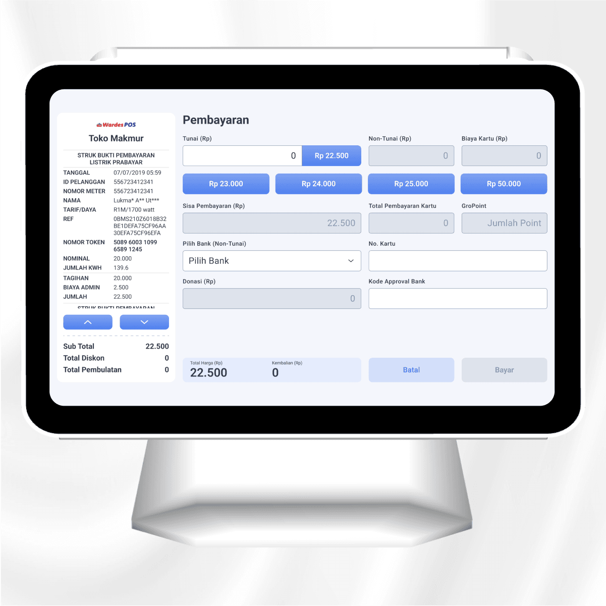 Setelah layanan PPOB dipilih dan data pelanggan dimasukkan, sistem mengarahkan ke halaman pembayaran yang konsisten dengan flow pembayaran barang di POS.