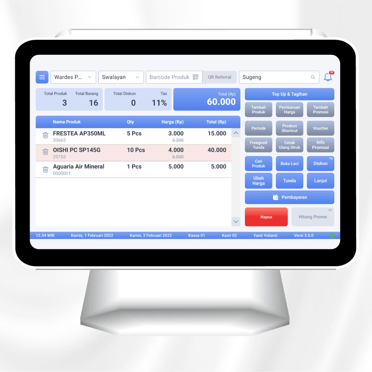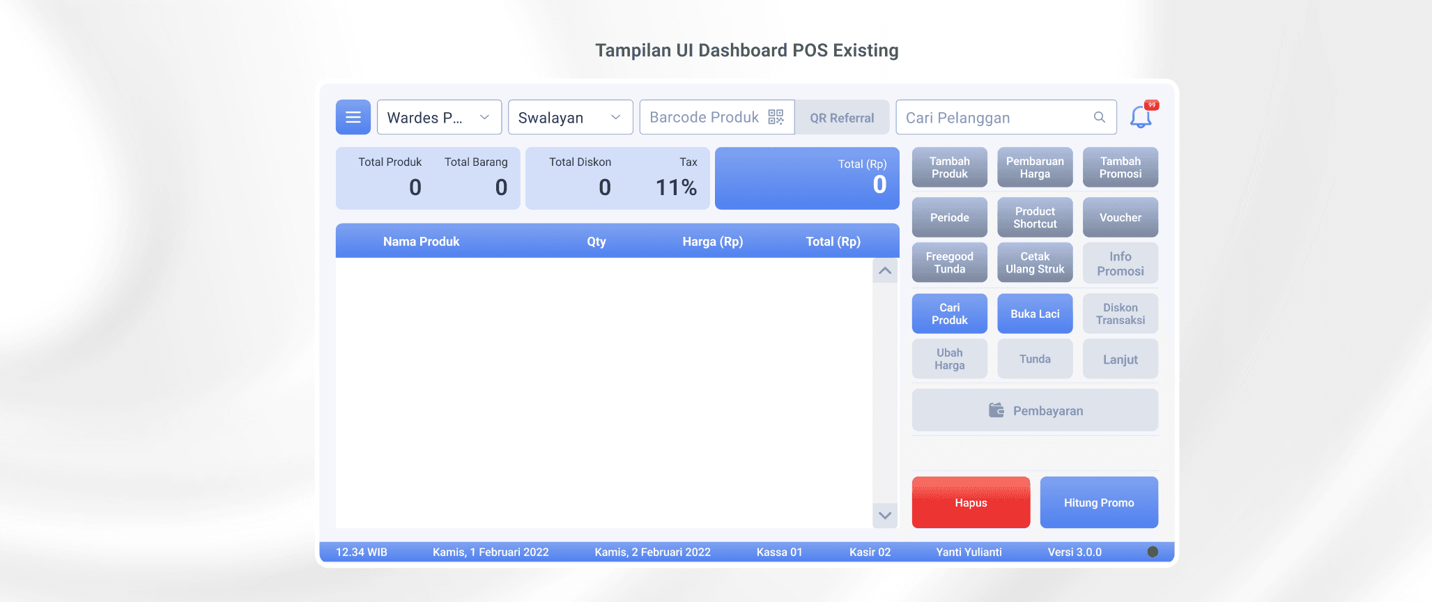 Dengan tampilan visual yang sederhana dan terstruktur, kasir dapat langsung memilih layanan yang ingin digunakan tanpa harus mengklik hal lain yang membingungkan.