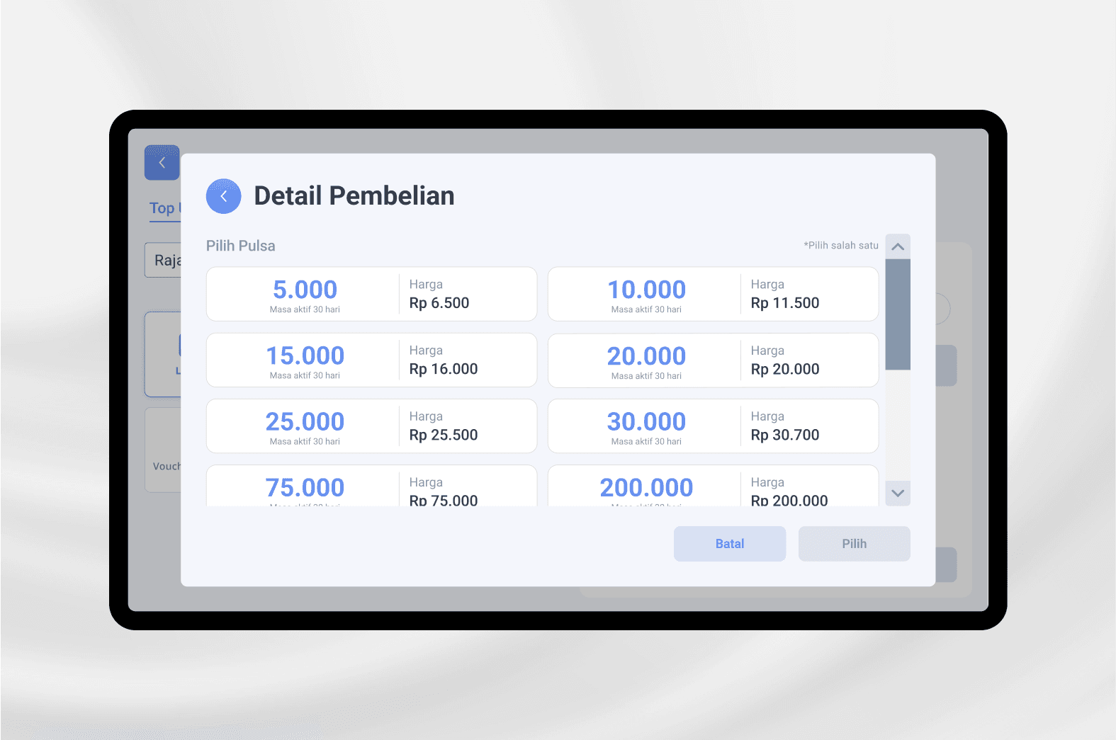 Experience: Membuat tampilan PPOB sederhana & familiar (kategori pulsa, listrik, PDAM, dll.) agar mudah dipahami pengguna.