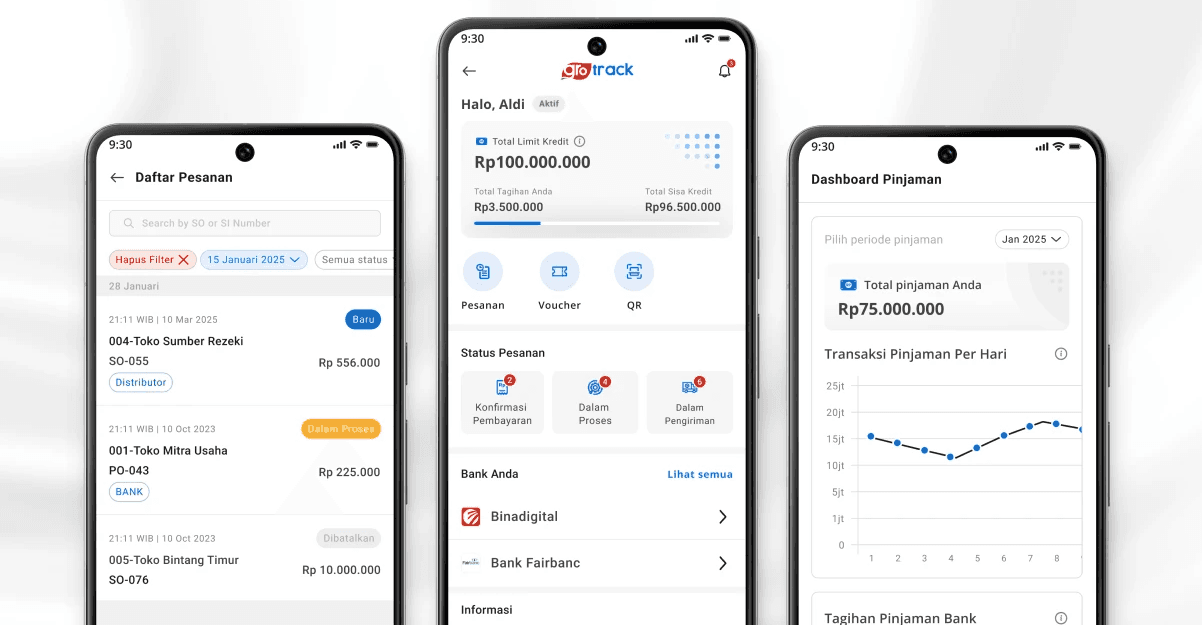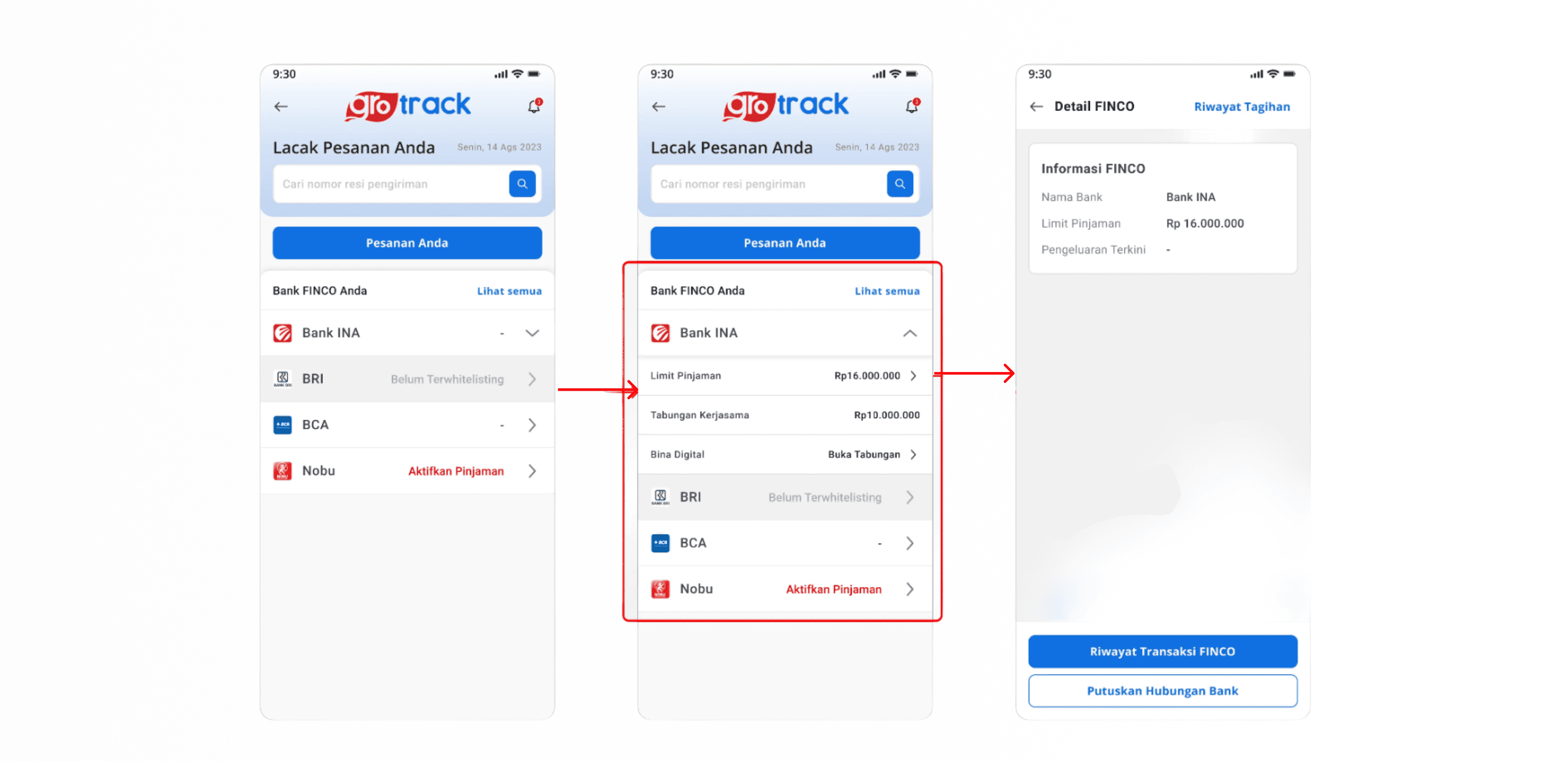 • Menyediakan tampilan Pengelolaan sampai Batas Kredit dan List Bank Finco secara ringkas mengenai detail pinjaman, kredit sampai pelacakan pesanan.