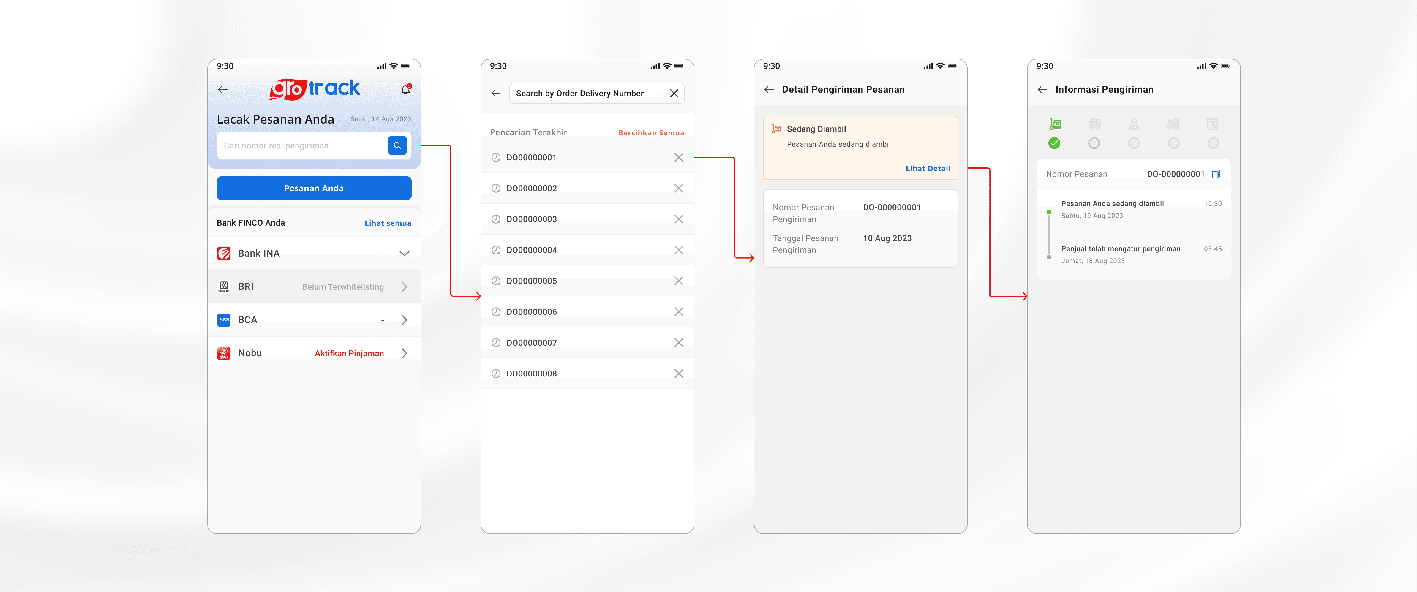 • Menyederhanakan alur pelacakan pesanan agar lebih efisien, mudah dipahami, dan memberikan akses cepat terhadap status terbaru.