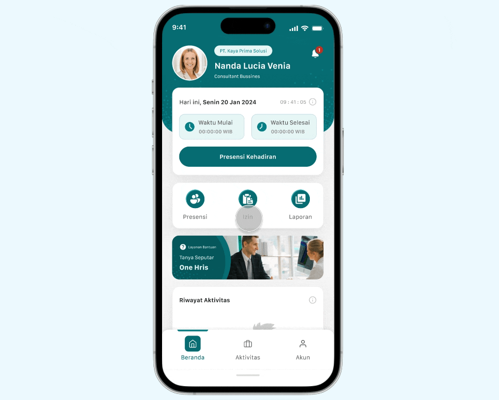 One HRIS adalah aplikasi mobile Android dan iOS yang membantu proses absensi, izin, dan monitoring jam kerja karyawan melalui dua peran utama: SysUser dan SysAdmin. Dengan tiga fitur andalan — Absensi di mana saja, Pengajuan izin, dan Monitoring karyawan — aplikasi ini memudahkan HRD mengelola kehadiran secara fleksibel. One HRIS dirancang untuk mendukung sistem kerja freelance, hybrid, dan remote, seperti profesi lawyer dan bidang lain yang tidak selalu bekerja di kantor.